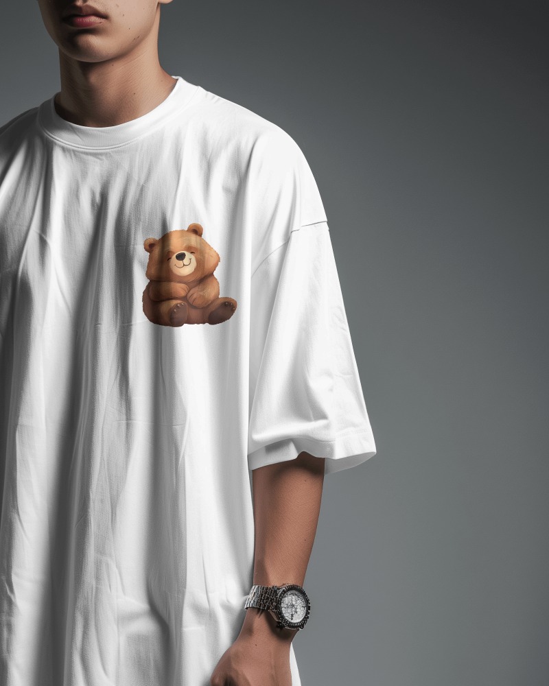 Men's White Cuddly Bear Oversized T Shirt