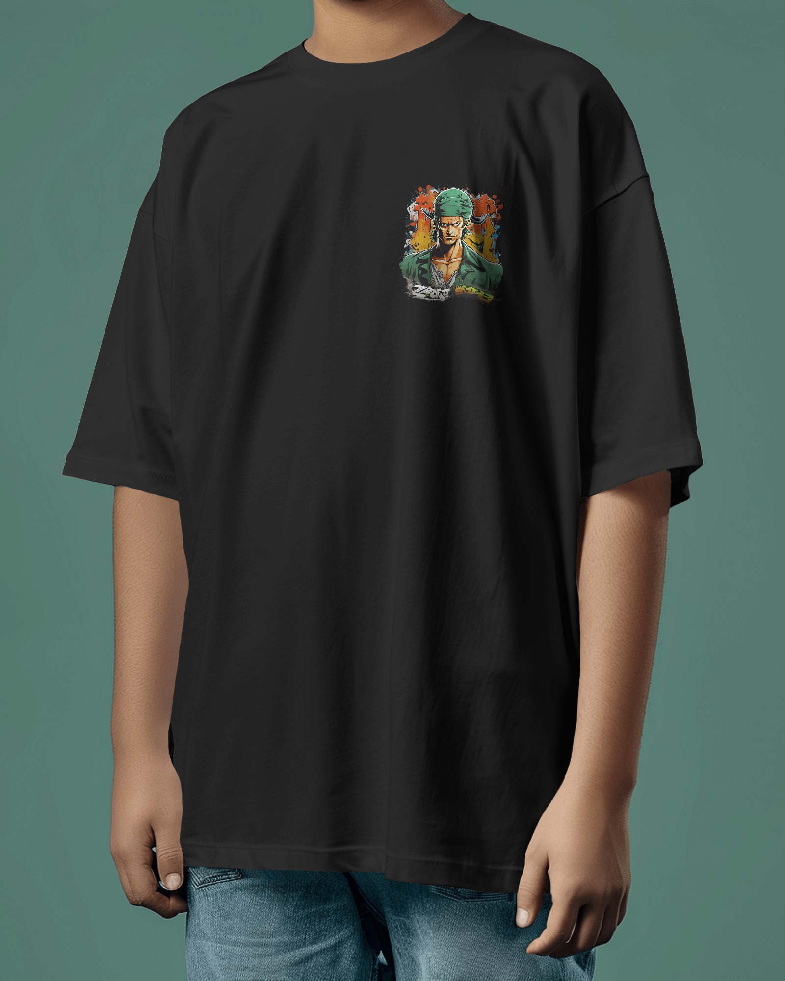 Men's Black Roronoa Zoro Oversized Graphic T Shirt