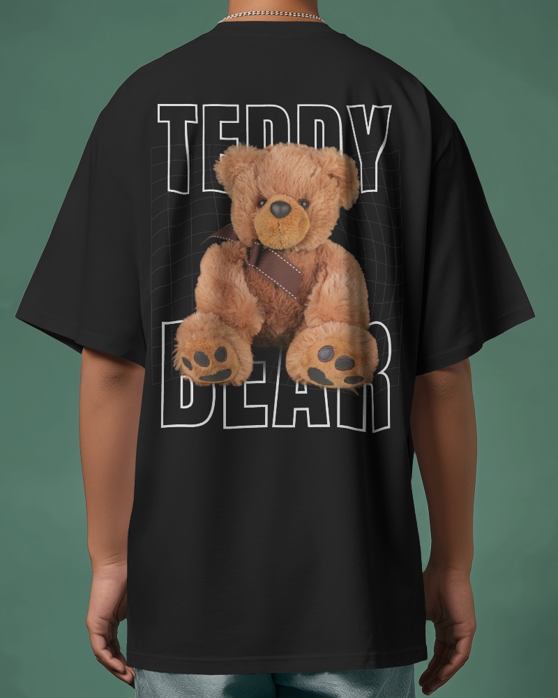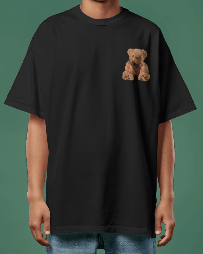 Men’s Black Teddy Bear Graphic Oversized T Shirt