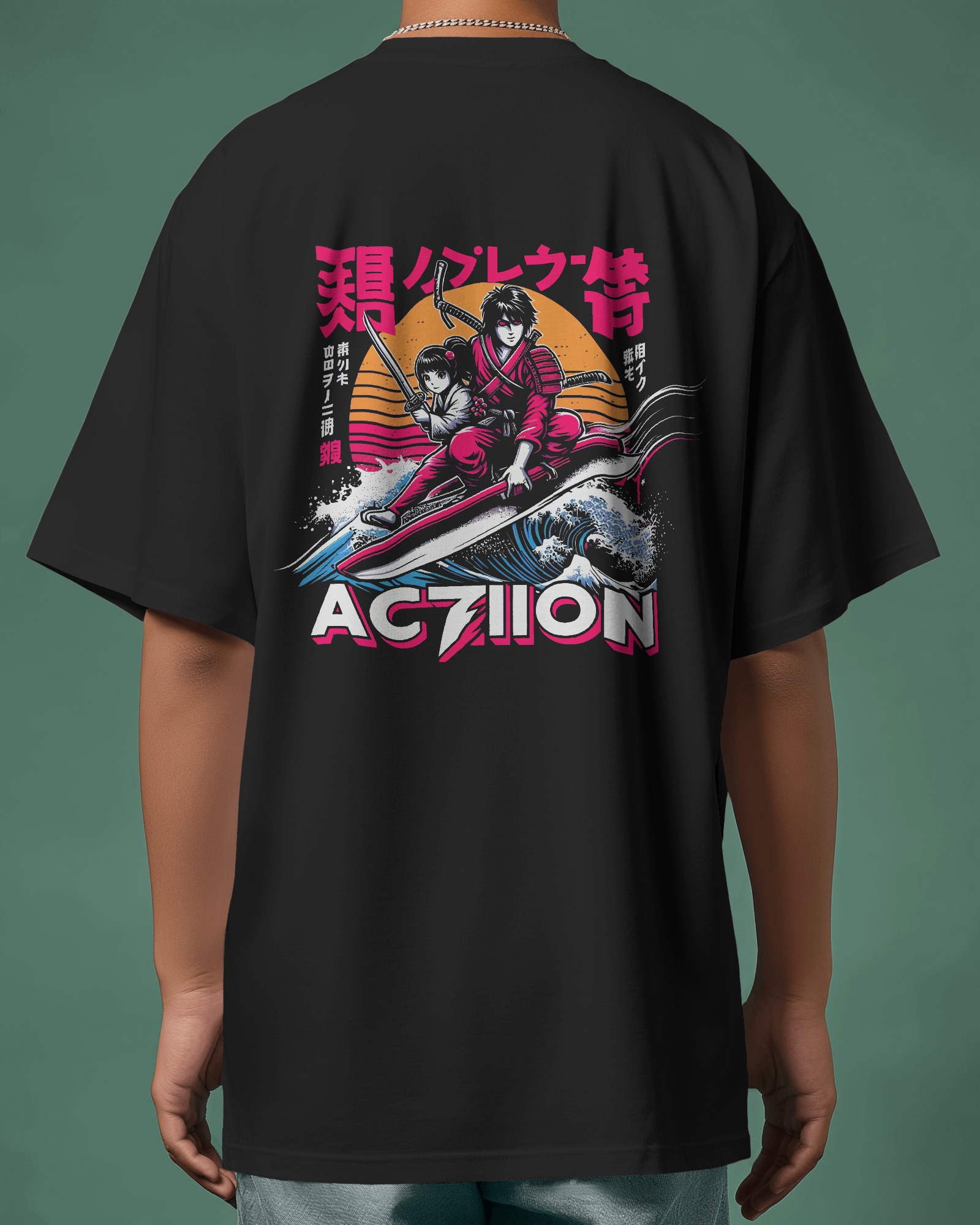 Men’s Samurai Action Graphic Oversized T Shirt