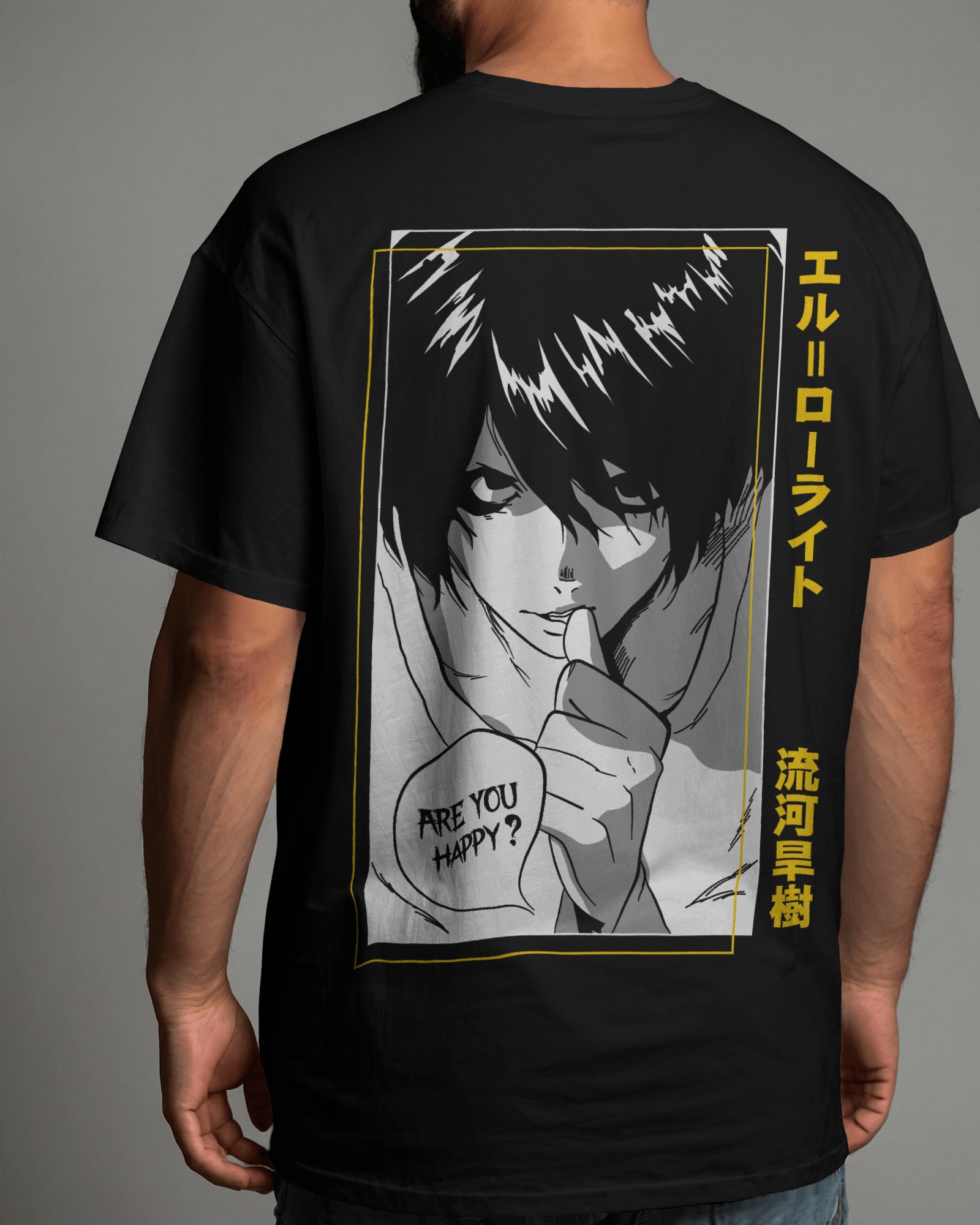 Oversized L T-shirt from Death Note featuring “Are you happy?”