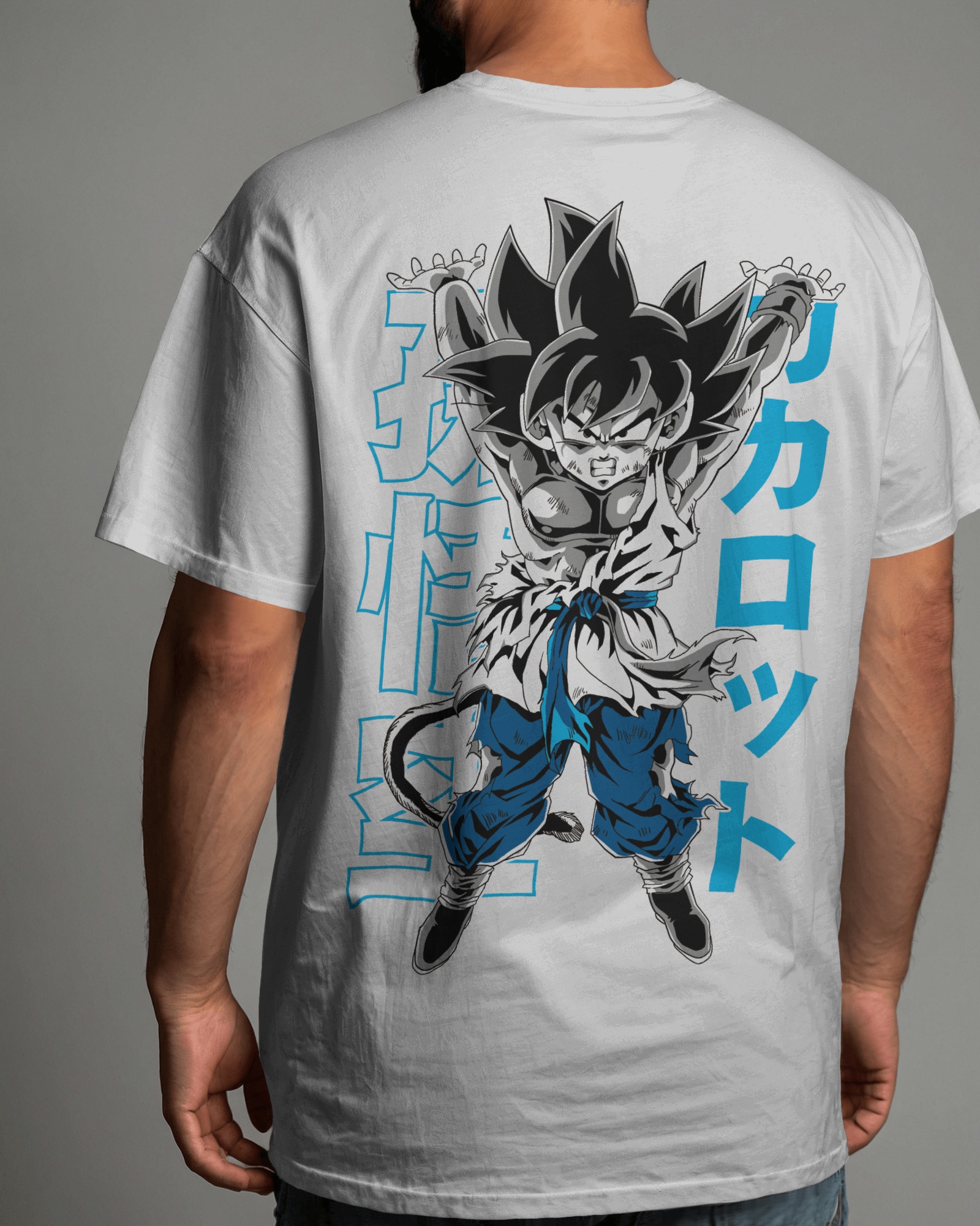 Oversized Goku T-shirt with Spirit Bomb pose design from Dragon Ball Z.